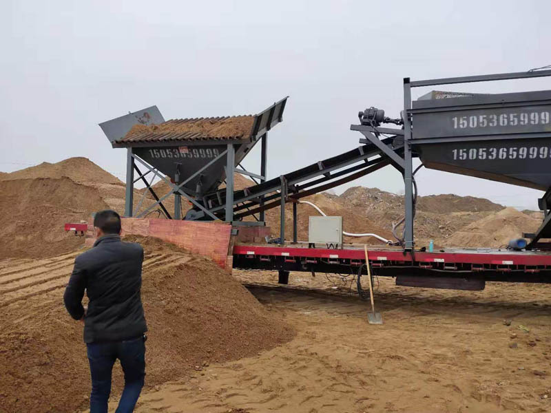 湖南大型移動式篩分洗沙機械工作現場,由青州冠誠重工機械有限公司生產研發安裝,現正式投入運行中。